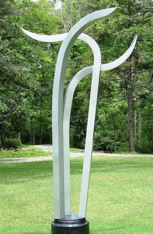On this planet people communicate in many ways, words, music, gestures. I prefer sculpture. Inspiration comes from almost anything, nature, architecture, emotion, or even a logo seen on a t shirt. Cutting, bending, shaping, grinding, welding and assembling the parts to form the shapes. Adding color to highlight the contours and enhance the negative space completes it. Light and shadows as the time of day and the seasons change bring the piece to life.